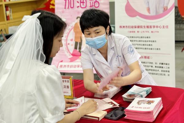 “恭喜你们!这张‘好孕健康卡’送给你们,记得孕前检查要避开月经期。”2025年5月20日,天元区婚姻登记处内,党支部书记龙文香带领党员团队,将一份份承载着健康祝福的“新婚礼物”送到新人手中。白大褂与红结婚证交相辉映,勾勒出这个特殊日子中最温暖的画面。