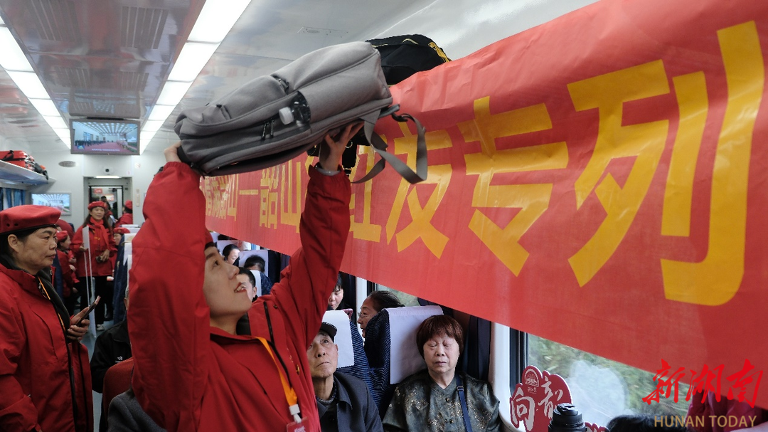 红友集结,由“星火姐姐”带领乘专列前往韶山。
