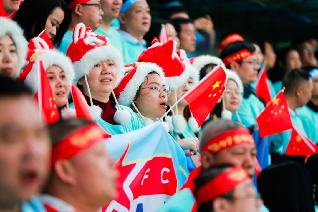 中场休息时,《大中国》的旋律突然响起。有人率先举起了小国旗,紧接着,一片跃动的红色海洋在看台上铺开。小李跟着哼唱,手里的国旗被风吹得猎猎作响,身边的老乡搂着他的肩膀,跟着节奏轻轻摇晃。“来深圳这么久,第一次觉得自己和这座城市贴得这么近。” 小李说。当《故乡的云》的旋律在终场时响起,看台上星星点点的手机闪光灯亮了起来,像游子们共同的心跳。鼓手的鼓点慢了下来,混着歌声飘向夜空:“天边飘过故乡的云,它不停地向我召唤……”一片跃动的红色海洋,不仅抒发了深沉的家国情怀,更在旋律中构筑起对深圳这座城市的集体归属感。