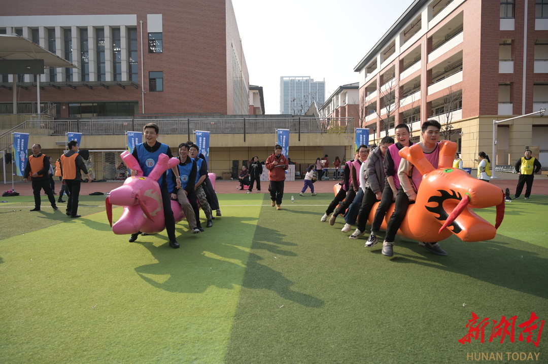随后,趣味竞赛正式拉开帷幕。本次竞赛设置了龙行天下、万众一心、趣味接力、集体跳大绳、协力竞走、超级大灌篮六大项目,每个项目都兼具挑战性、趣味性与团队性,既考验选手们的体能与技巧,更注重团队的协作与配合。 赛场上,各参赛队伍精神抖擞、斗志昂扬。“龙行天下”项目中,队员们乘骑龙舟、步调一致,向着终点奋勇进发,展现出强劲的团队凝聚力;“万众一心”环节里,队员们默契配合,在跑动中稳稳颠球。