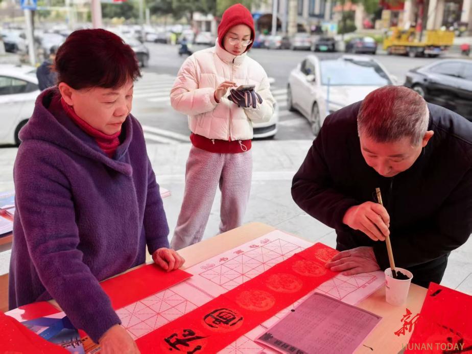 新湖南客户端2月3日讯(通讯员 王晨星)墨香启岁,福满嘉枫。2月3日下午,湖南湘江新区咸嘉湖街道嘉枫社区携手金地峯范府、旭辉都会山物业服务中心,在嘉枫社区一楼前坪温情启幕“嘉枫邻里聚 挥毫迎新春”写春联活动,以笔为媒、以墨传情,为辖区居民送上满含心意的新春祝福。