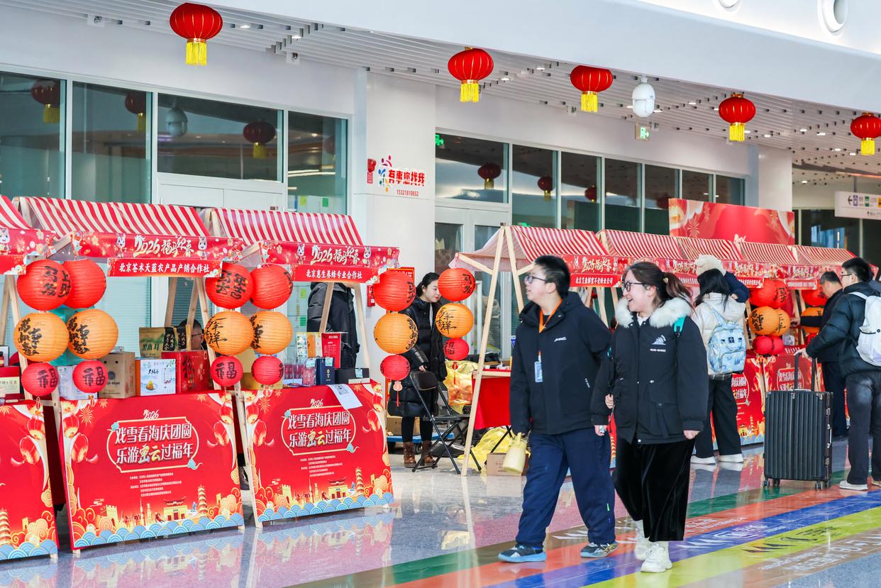 2月2日,2026年春运开启,在北京朝阳站,“‘京’彩站区·精彩汇集”非遗市集等文化活动营造浓厚的新春文化氛围,集中展示了“北京产品北京服务新形象”。邓伟摄