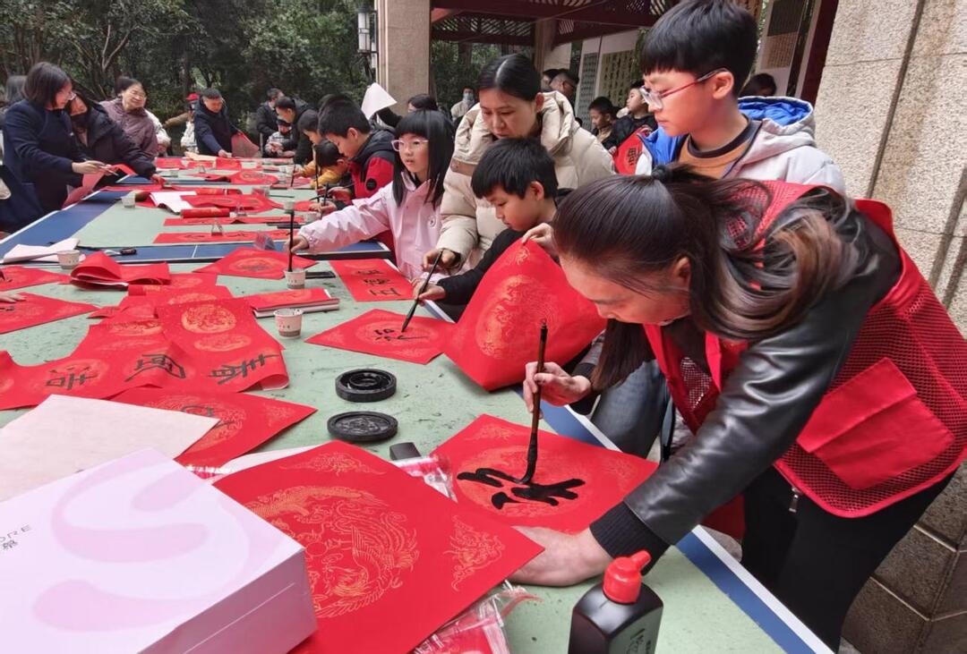 湖南日报·新湖南客户端2月4日讯(通讯员 朱莹)岁末寒风起,邻里暖意浓。2月4日下午,长沙市天心区裕南街街道杏花园社区新时代文明实践站、裕南街街道社区社会组织联合希言书法,在保利小区爱国亭开展以“希言书法迎春送福 ‘杏’福社区万事顺意” 为主题的青少年社会实践活动,近百名业主、青少年及新就业群体参与其中,在欢声笑语中定格新春美好时光。