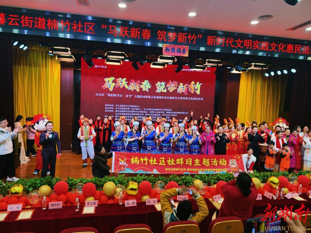 湖南日报·新湖南客户端2月5日讯(通讯员 陈艳 王鹏芝)2月3日下午,长沙市天心区暮云街道楠竹社区“马跃新春,筑梦新竹”新时代文明实践文化惠民活动,在长郡天心实验学校报告厅温情启幕。辖区单位、居民、新就业群体、党员干部、志愿者代表等700余人欢聚一堂,共赴新春之约,共享文化盛宴。