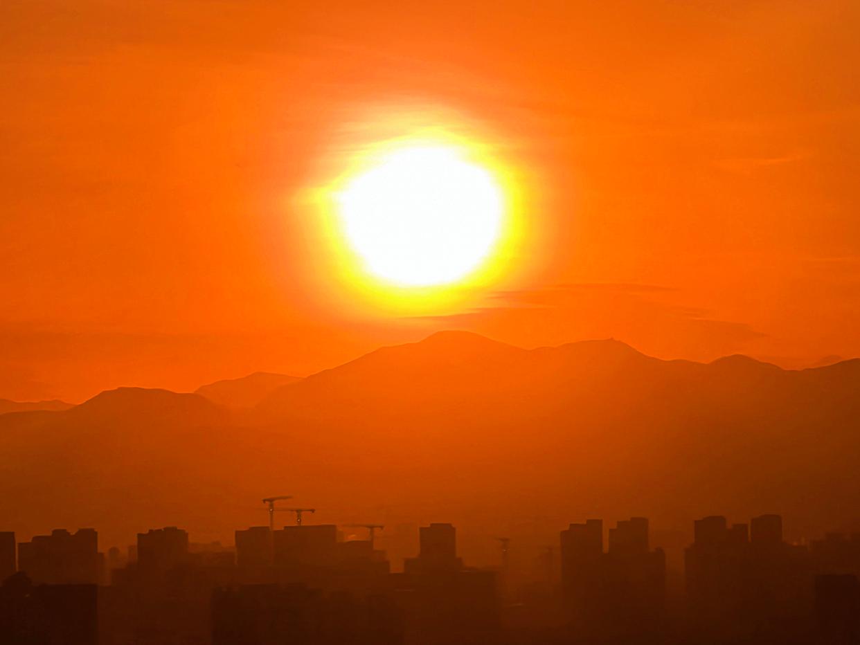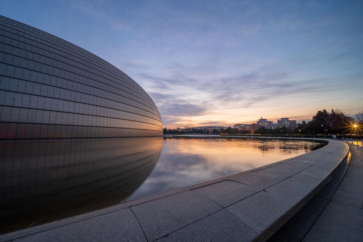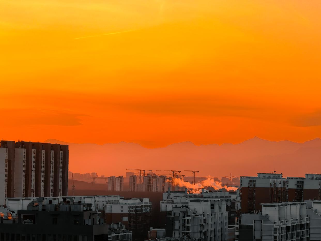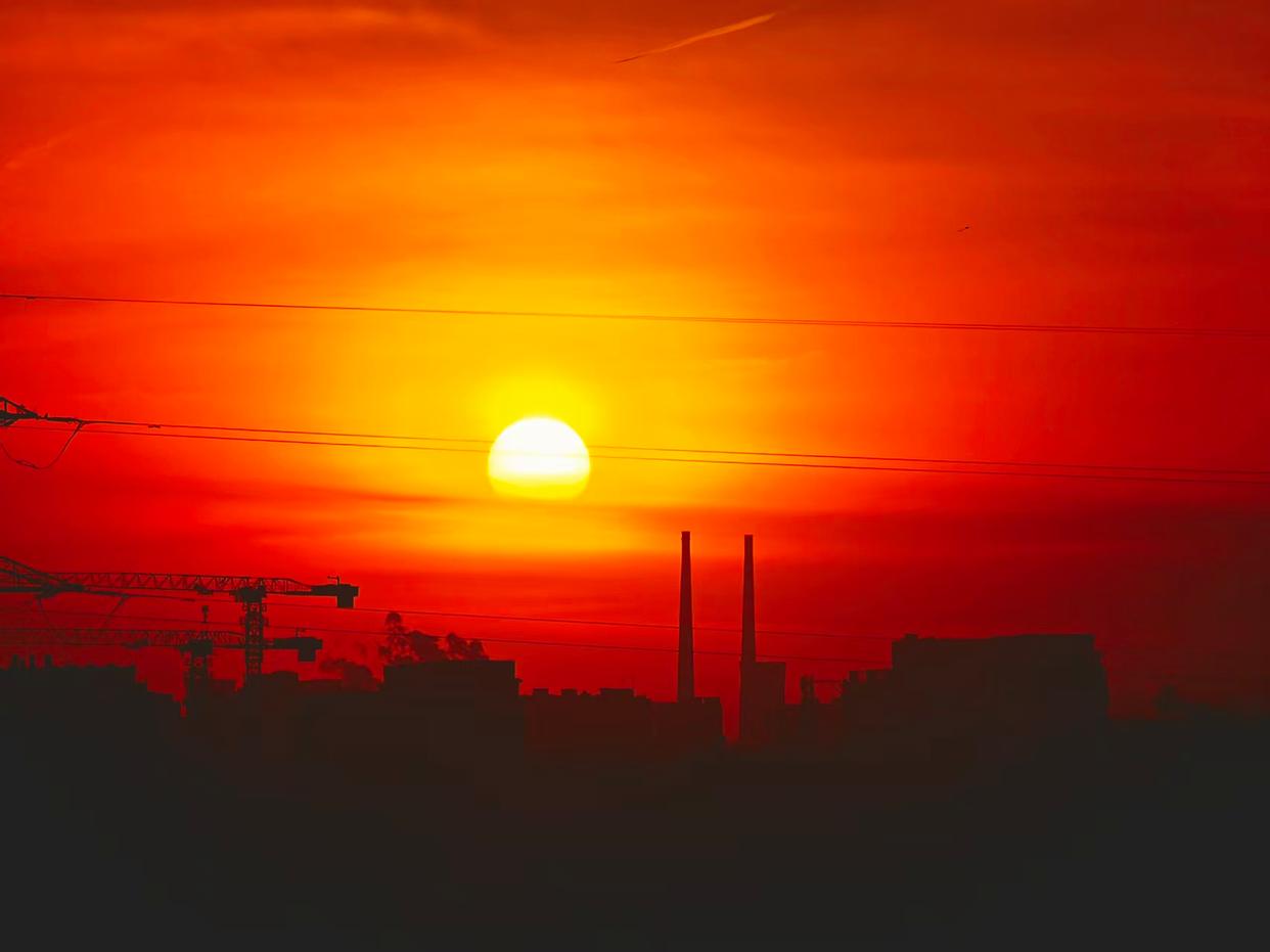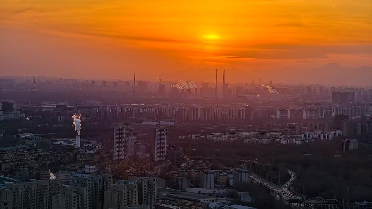 2月5日傍晚,北京,夕阳如约而至,晚霞仿佛绸缎般流动,天空被橙色霞光铺满,美不胜收。