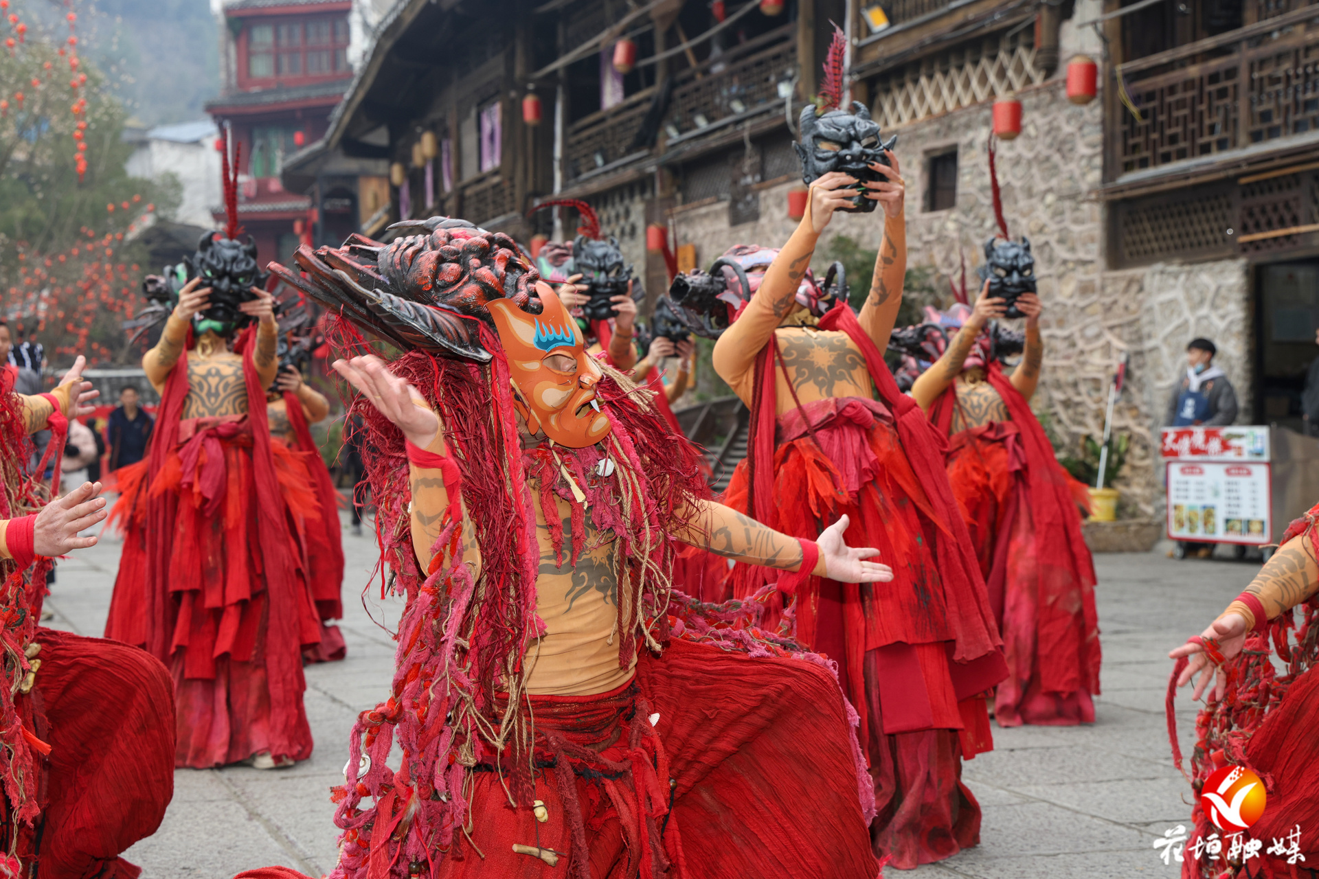 2月4日上午,“非遗贺新春·寻味中国年”湖南非遗购物月暨“神秘湘西·梦回边城”三省非遗品享会在花垣县边城茶峒景区正式启幕。