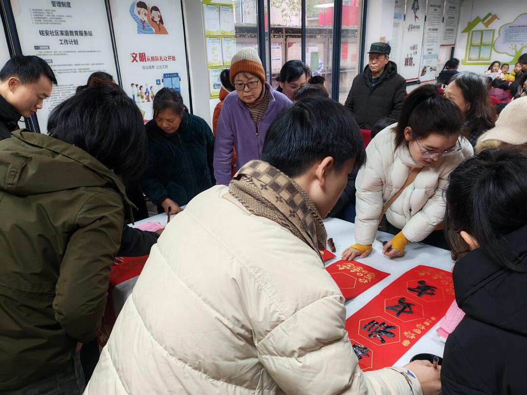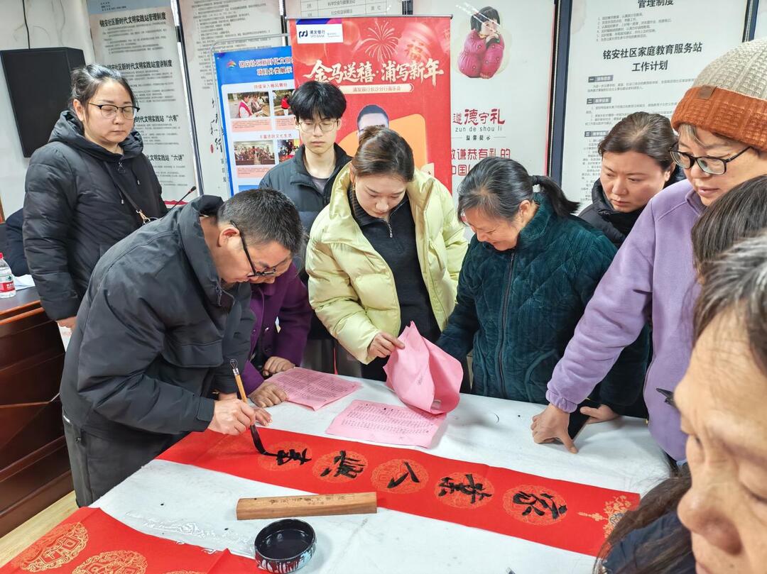 湖南日报·新湖南客户端2月6日讯(通讯员 浣宇馨)2月6日下午,长沙市天心区黑石铺街道铭安社区新时代文明实践站内墨香盈室、暖意融融,一场以“书香墨韵 楹联送福”为主题的学生社会实践活动在此温情启幕。社区联合浦发银行长沙分行,特邀省市级书法协会2位名家现场挥毫,为辖区40余名中小学生送上充满文化底蕴的新春祝福。