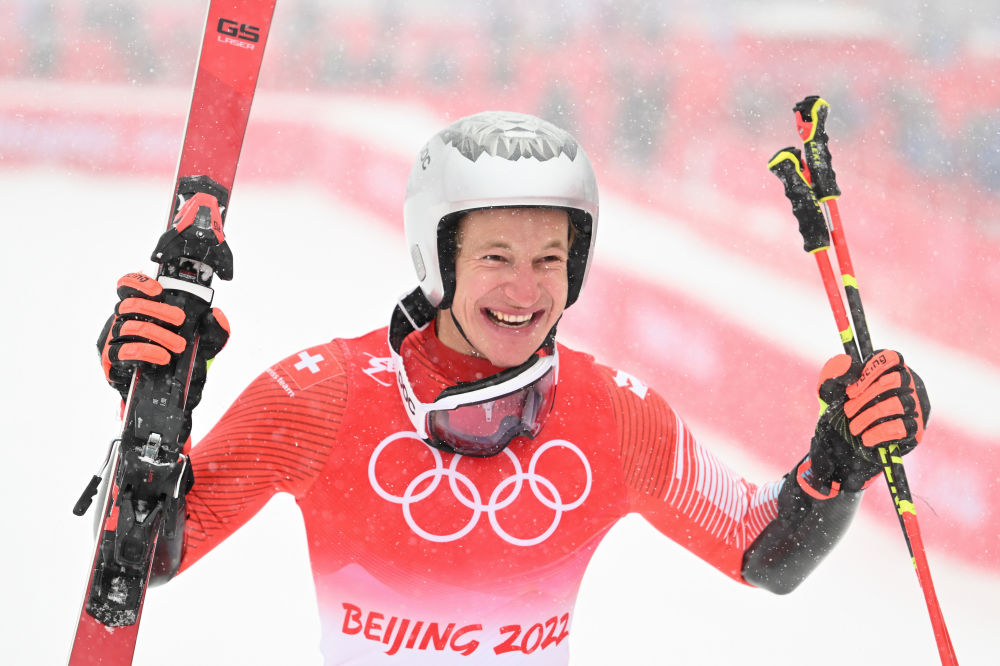 2022年2月13日,北京2022年冬奥会高山滑雪男子大回转比赛在延庆国家高山滑雪中心举行,瑞士选手马尔科·奥德马特获得冠军。新华社记者 连振 摄