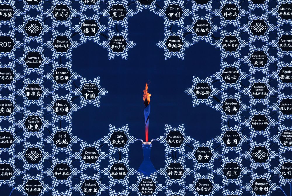 北京冬奥会开幕式“飞扬”火炬嵌入雪花台