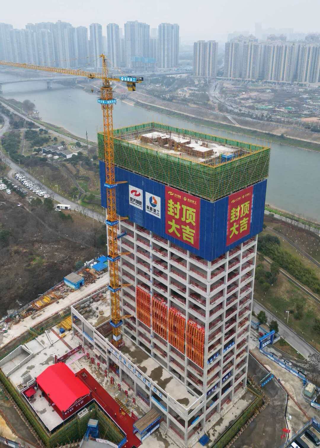 新湖南客户端2月7日讯(记者 谢雨玳 通讯员 温琳)今日,宏大爆破总部办公大楼在长沙市芙蓉区滨河路核心区域完成主体结构封顶,这座总建筑面积超3.4万平方米的现代化企业总部,成为芙蓉区产业升级的又一重要地标,也标志着这家国内矿服行业领军企业扎根长沙、布局全球的战略布局迈出关键一步。