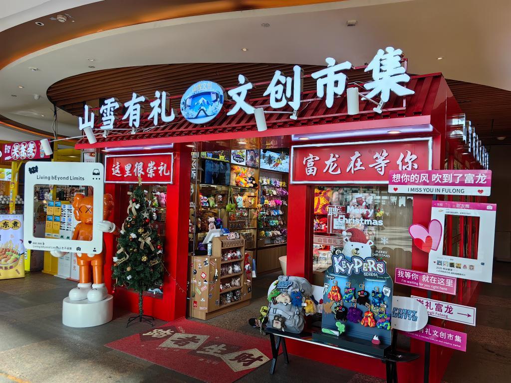 ▲2026年1月16日拍摄的崇礼富龙滑雪场的一家文创产品店(手机照片)。