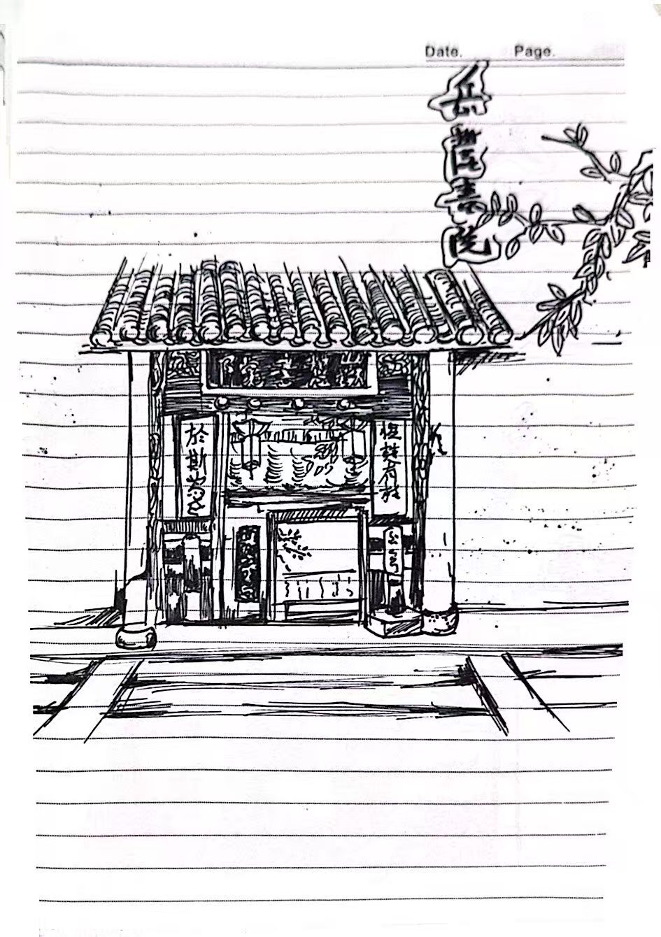 唐蕾蕾速写作品《岳麓书院》,受访者供图
