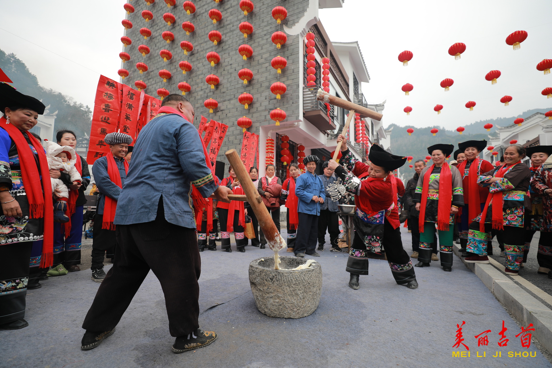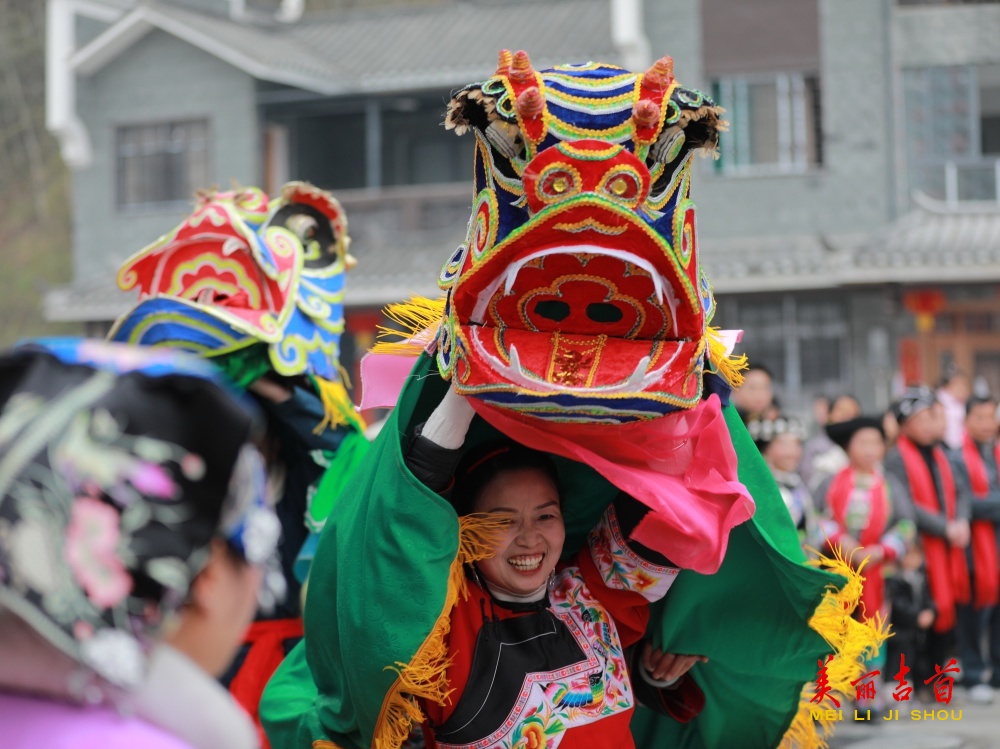 大红灯笼高高挂,安置区里年味浓。身着盛装的乡亲们汇聚在中心广场,银饰叮当,笑语盈盈。苗狮登高,步步攀升,寓意生活节节向上;苗鼓激越,声声昂扬,擂响崭新岁月的精气神。