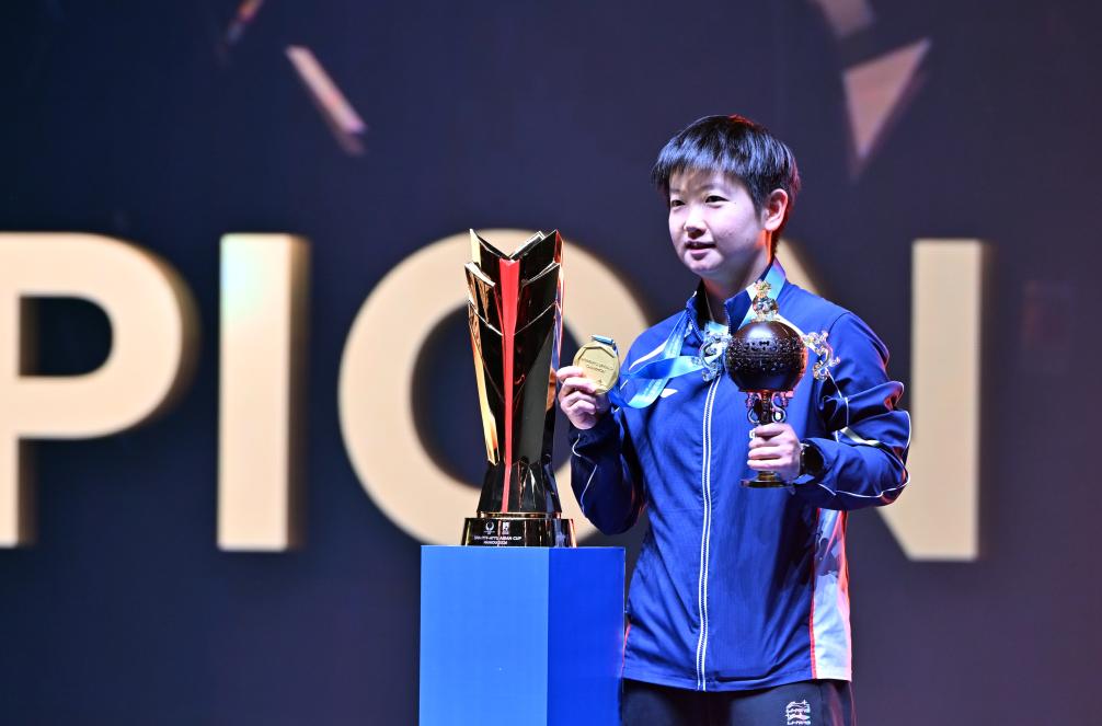 2月8日,孙颖莎在颁奖仪式上。新华社记者 郭程 摄