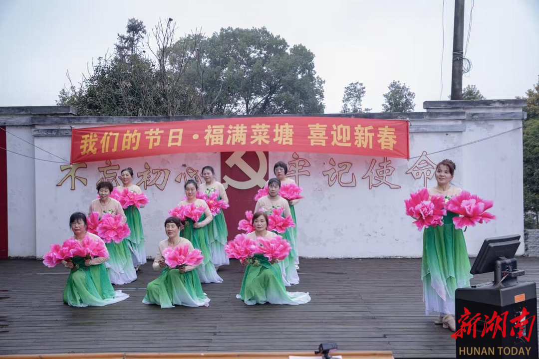 腊月年意浓,乡村喜庆多。2月7日上午,攸县菜塘村弄塘文化广场上一片红火热闹,由村“两委”组织的“福满菜塘·喜迎新春”联欢活动在这里欢乐开场。村民从四面八方汇聚而来,以自编自演的节目、亲手书写的祝福和阵阵欢笑声,共同迎接新春佳节,让冬日的村庄洋溢着暖意与活力。