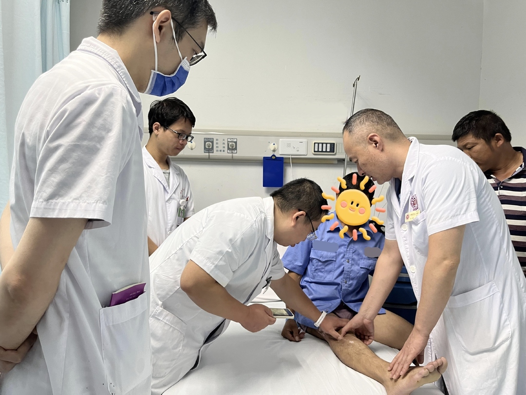 湖南省人民医院骨二科肖晟主任团队查看患者病情。