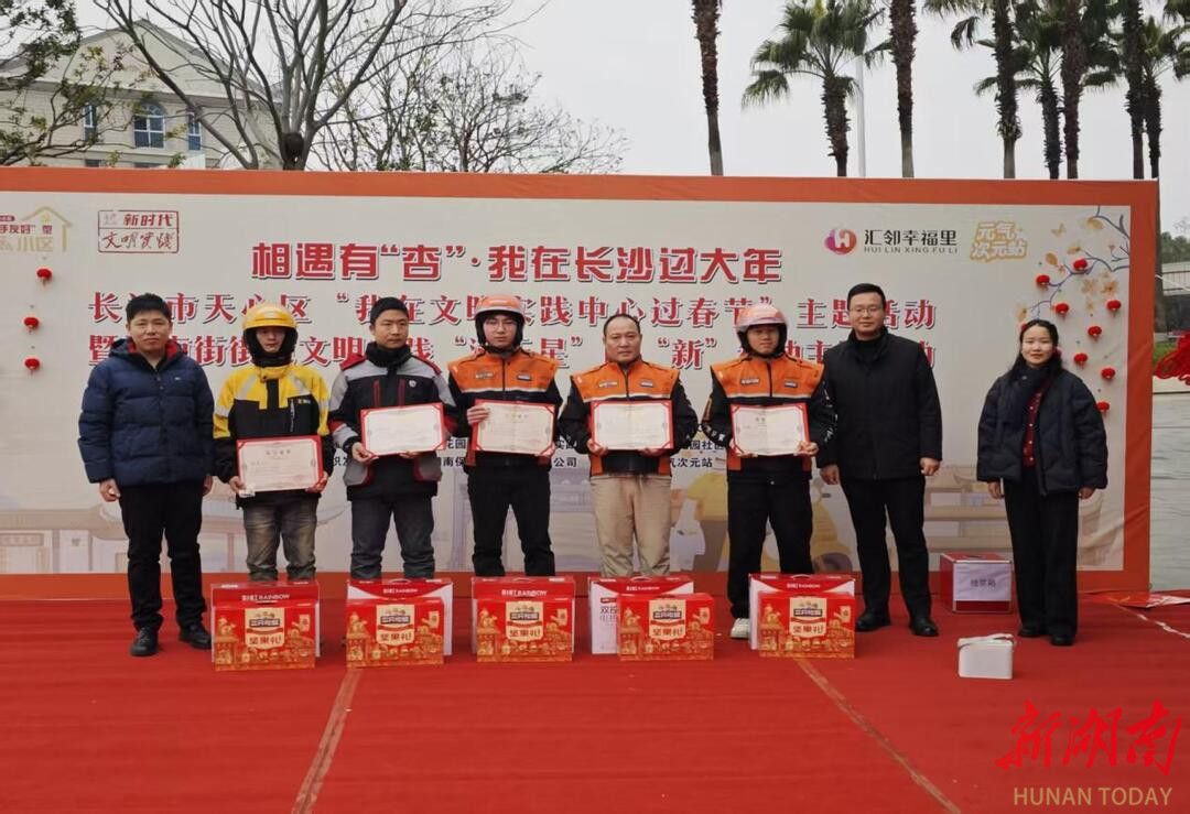 湖南日报·新湖南客户端2月11日讯(通讯员 朱莹)新春将至,年味渐浓。为让坚守一线的新就业群体感受城市温度,在长沙度过一个暖心祥和的春节,2月11日,长沙市天心区裕南街街道杏花园社区党委、裕南街街道工会联合会、裕南街街道社区社会组织联合辖区爱心单位保利物业、南湖和睦医院、汇邻幸福里、元气次元站在保利国际广场幸福里前坪开展“相遇有‘杏’・我在长沙过大年”主题活动,辖区 200余名快递小哥、环卫工人等新就业群体欢聚一堂,共迎新春。