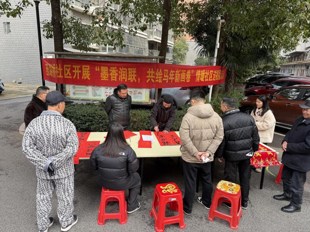 2月11日南方小年当天,西湖桥社区在广电北苑小区开展“墨香润联,共绘马年新画卷”送祝福活动,特邀书法家协会书法家现场挥毫。活动现场墨香四溢,书法家们笔走龙蛇,书写出一幅幅寓意吉祥的马年春联,承载着对新一年的美好期许。