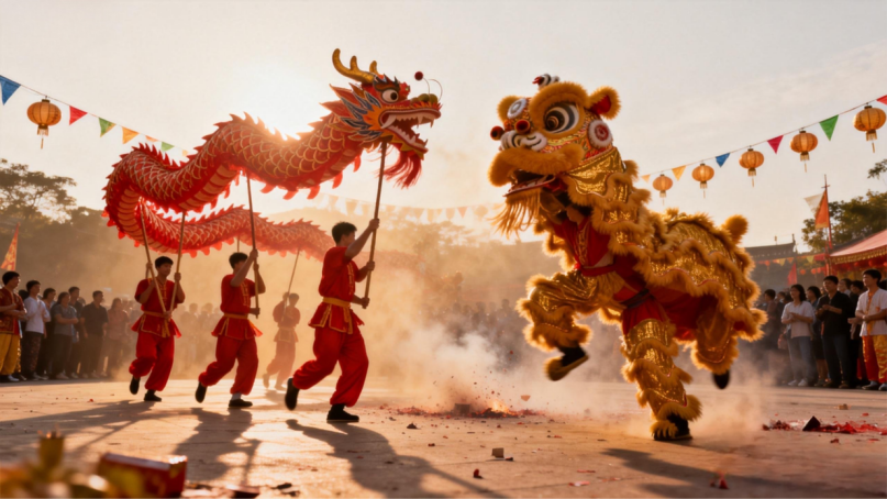 金龙盘旋、瑞狮腾跃,伴随着铿锵有力的锣鼓节奏,时而翻腾跳跃,时而摇头摆尾,活灵活现、气势非凡。每一次舞动,都是对新年的美好祈愿;每一声喝彩,都是对幸福生活的热切期盼。