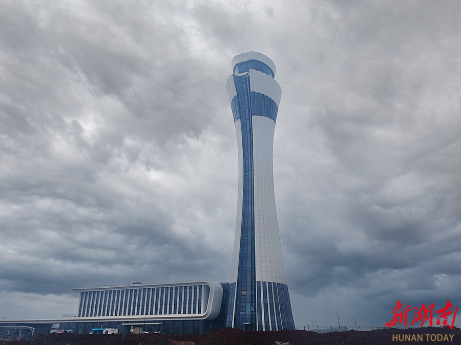 On February 10, the control tower work area project at Changsha Huanghua International Airport's Terminal 3 smoothly entered its final phase. The project is constructed by the China Construction Third Engineering Bureau Group. Featuring a highly recognizable "slim waist" design, the project has become the airport's new landmark structure. Upon completion, it will significantly enhance airport operational efficiency and contribute to establishing an international aviation hub. (Photo/He Bin)