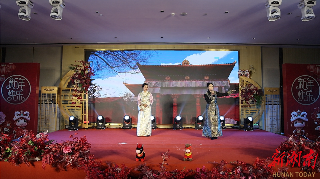 湖南日报·新湖南客户端2月13日讯(记者 李强 通讯员 陈敏 赖茳)“妈妈,你看,我们团拜会上好热闹,同事们都像家人一样,我在这里过得很好。”2月11日,中国石化湖南株洲石油分公司团拜会上,白玛拉吉对着手机镜头,向远在西藏的母亲分享着眼前的喜庆景象。镜头另一端,吾金卓玛正身着鲜艳的藏族服饰,和她一起舒展长袖,用一曲藏语歌《真诚的祝福》,将雪域高原的深情,送到湘江之畔的每一位同事心中。