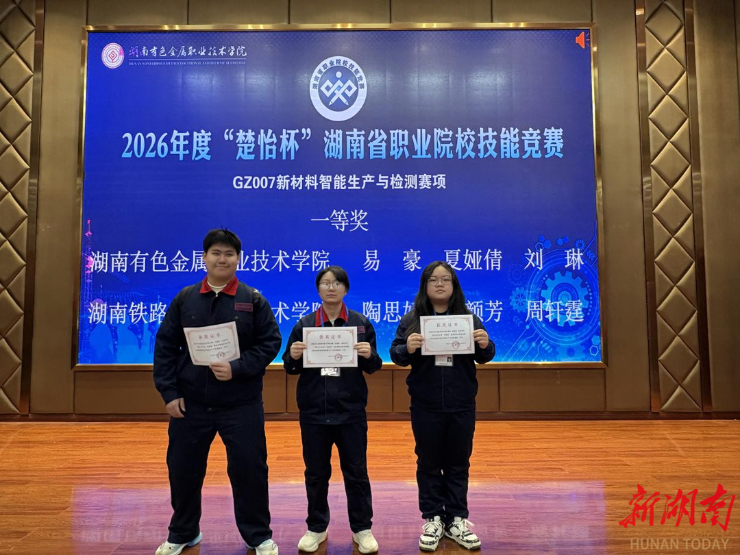 湖南日报·新湖南客户端2月14日讯(通讯员 李嫣)近日,2026年度“楚怡杯”湖南省职业院校技能竞赛圆满落幕。湖南有色金属职业技术学院选派52支代表队参加28个赛项,经过激烈角逐,共荣获28项奖项,其中一等奖4项、二等奖8项、三等奖16项,充分展示了学院在技能人才培养方面的扎实成效与综合实力。