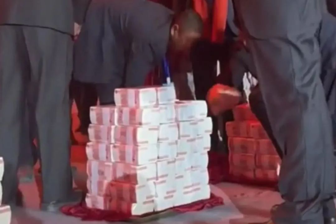 在颁奖表彰环节过后,就进入最令人激动的数钱环节。崔培军表示,到场的都有份,现场现金有6000万元,“希望员工多数一点,既讲究数量,又要讲究质量,待会啥都别想,就想着数钱,多数点。”