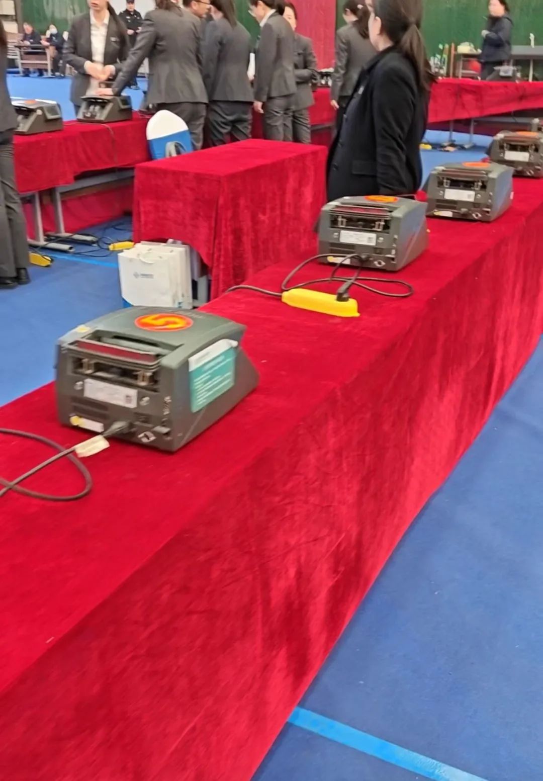 倒计时结束后,员工代表停止数钱,点钞机开始核验。