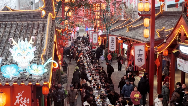 “这是我第一次参加这么特别的‘赶年’活动,长龙宴、摆手舞、红灯笼等营造出浓厚的年味,让我感觉到暖意满满!”益阳游客张子怡满心欢喜地说道。