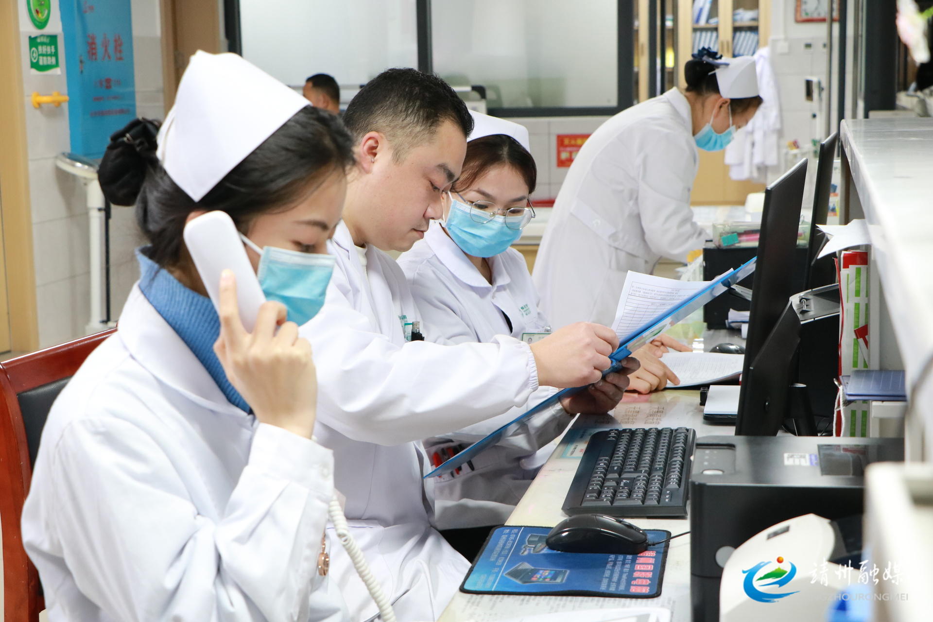 ▲怀化市中心医院靖州院区的医护人员春节在岗(夏源懋 摄)