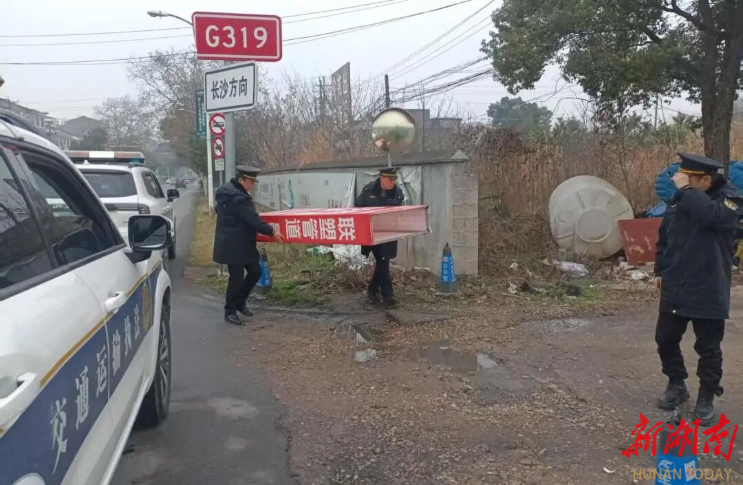 益阳市赫山区交通执法人员开展路域整治,守护道路安全有序。