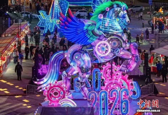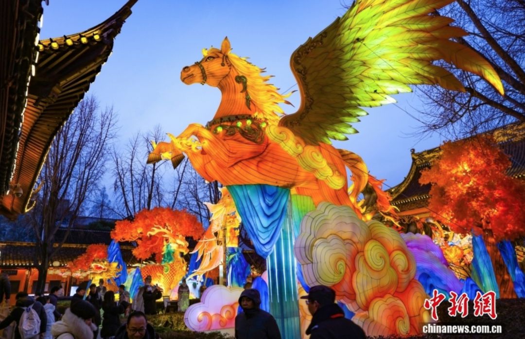 南京上秦淮灯会飞马彩灯。中新社记者 泱波 摄