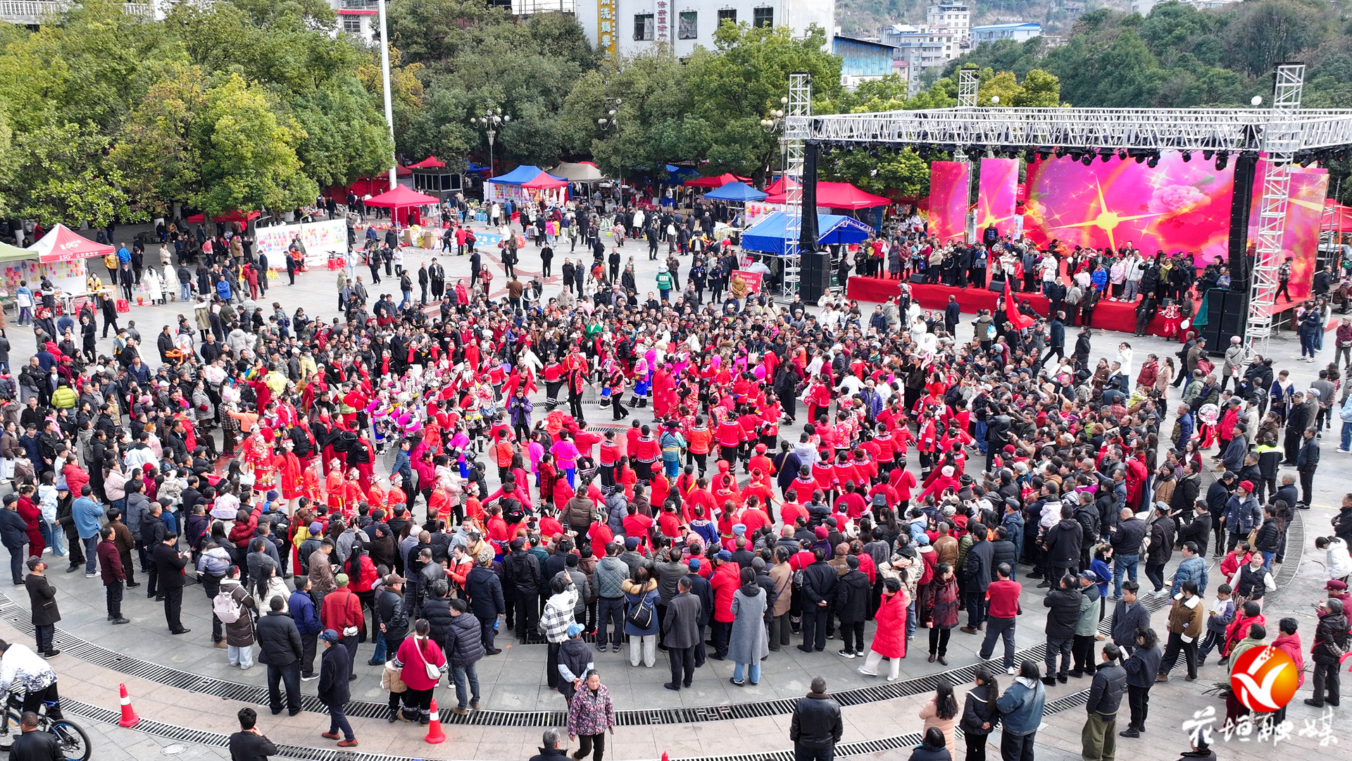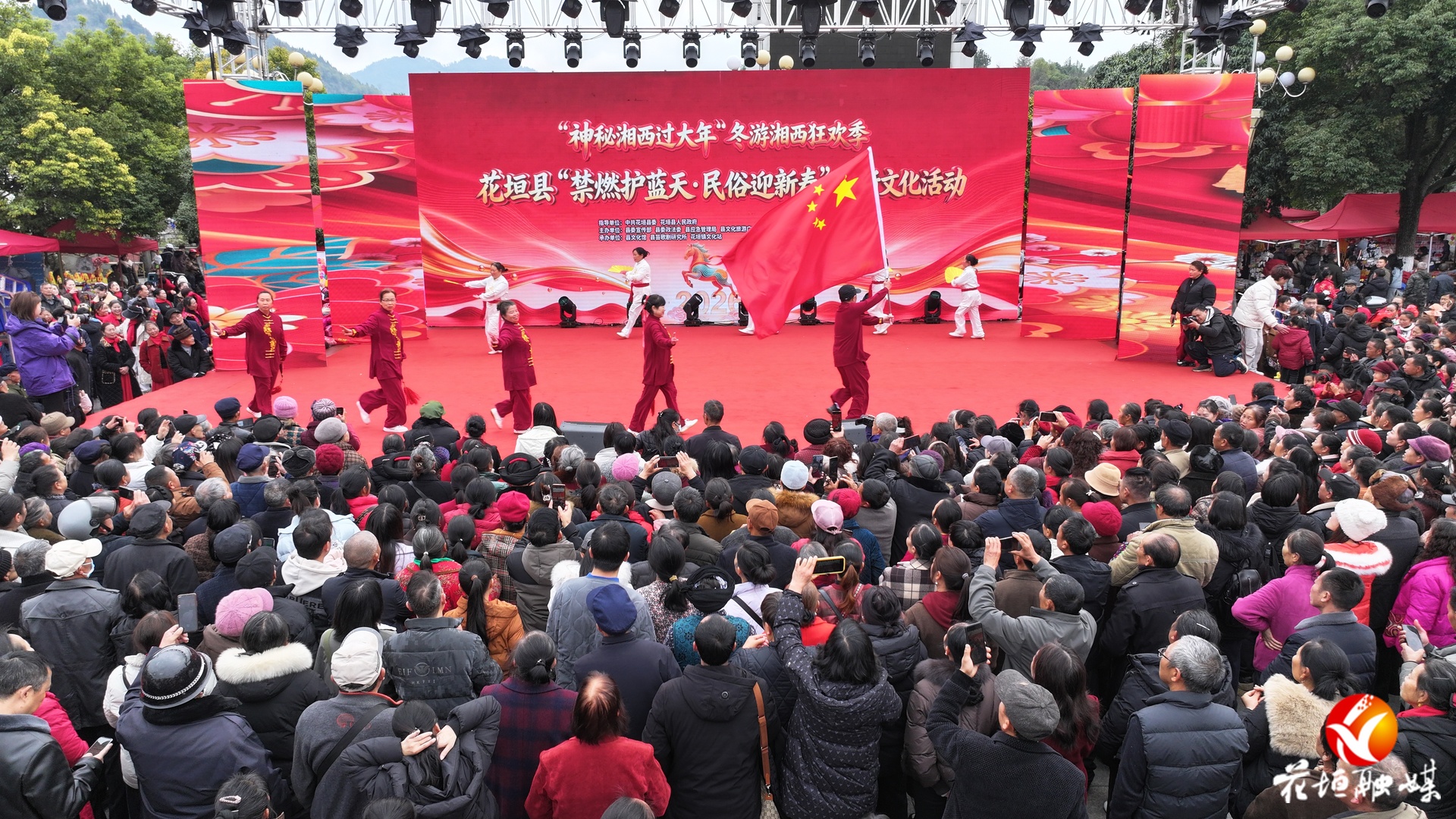 湖南日报·新湖南客户端2月20日讯(通讯员 宋显金 林彬 龙恩泽 于佳)金马贺岁,瑞气盈门。农历丙午年大年初一,花垣县边城广场锣鼓喧天、人声鼎沸,处处洋溢着喜庆祥和的节日气氛。神秘湘西过大年——“马年启新岁·喜乐满花垣”2026年花垣县春节系列群众文化活动在此热闹上演。