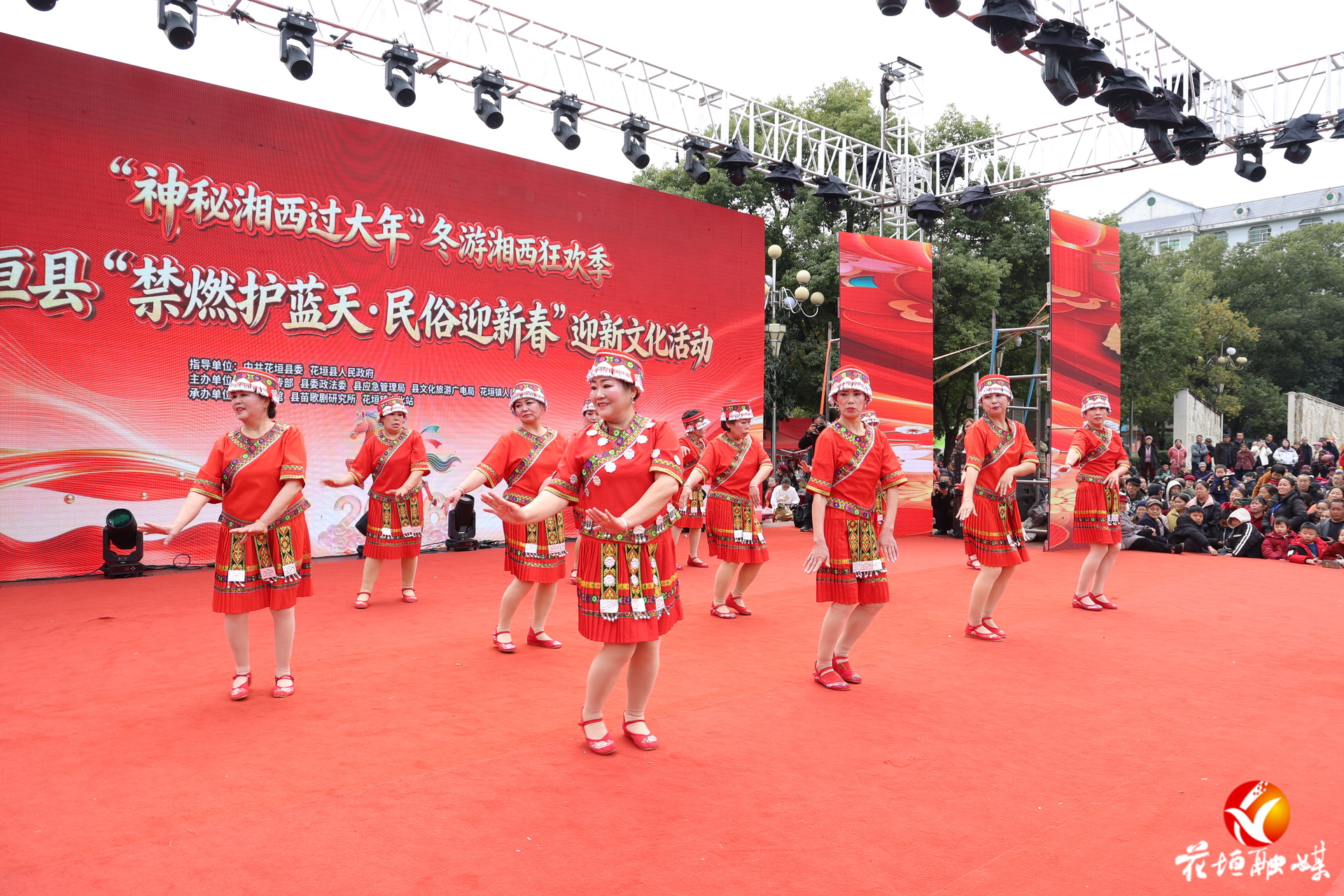 与以往不同的是,今年春节少了烟花爆竹的喧嚣,却多了民俗文化的韵味。来自花垣镇、双龙镇、麻栗场镇等乡镇的30余支民间文艺队欢聚一堂,用最地道的民俗展演和最热情的歌舞,为广大父老乡亲献上了一场年味十足的文化盛宴,共同倡导绿色环保、文明和谐的新春新风尚。