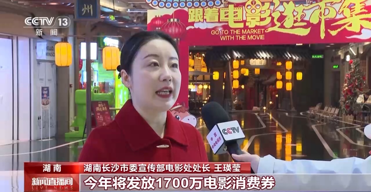 湖南长沙市委宣传部电影处处长 王瑛莹:通过省市联动,今年将发放1700万电影消费券,并推出“观影+餐饮”“观影+购物”套餐。下一步,我们将持续打造跟着电影游长沙、品美食、赏非遗、逛市集等品牌活动,推动电影与文旅消费深度融合。