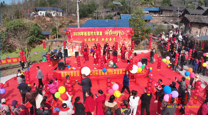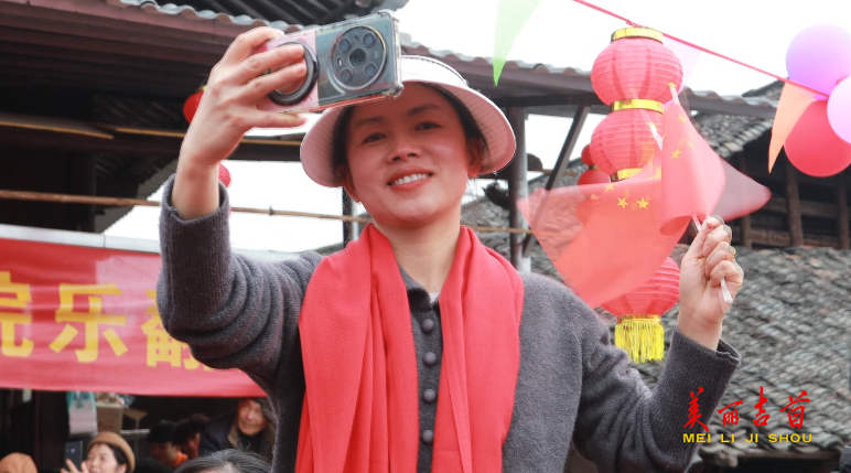 早已翘首以盼的亲人们立即迎了上去。村民们纷纷为归家的女儿们戴上象征着吉祥如意的火红围巾,送上真挚的新春祝福。随后,一场由村民们自编自演的文艺演出在村中舞台精彩上演。歌舞、器乐轮番登场,台上台下欢声笑语不断。