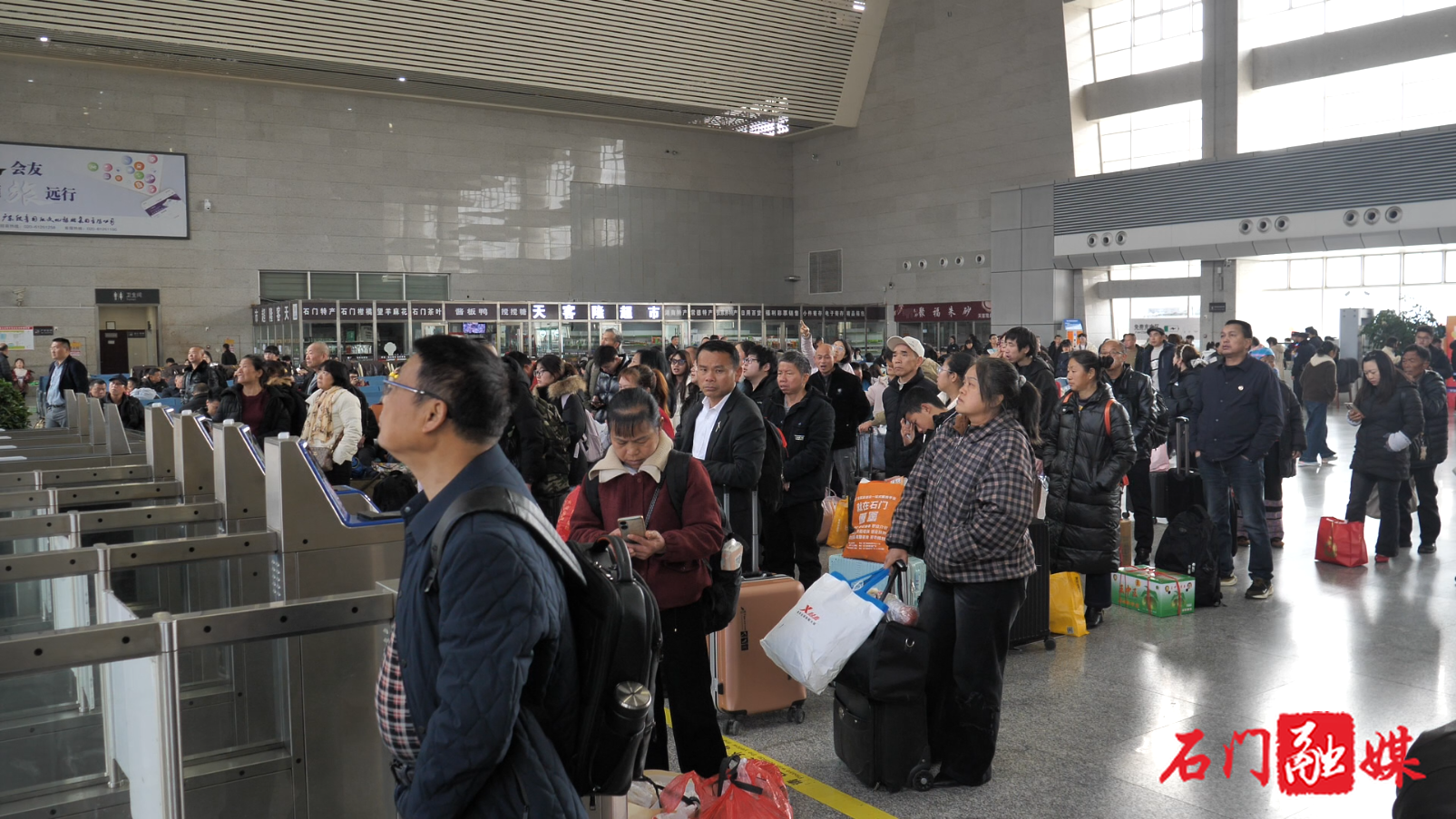 在石门县火车北站,候车大厅内人头攒动,旅客们提着行囊、带着石门特产与家人的叮嘱,脸上既有离别不舍,更有对新一年的憧憬与期盼。大家自觉排队安检、检票进站,工作人员与志愿者穿梭引导,客流虽大却秩序井然、忙而不乱。在汽车站内,客运班车准点排班、依次发车,旅客规范排队、有序乘车,出行流程高效顺畅。