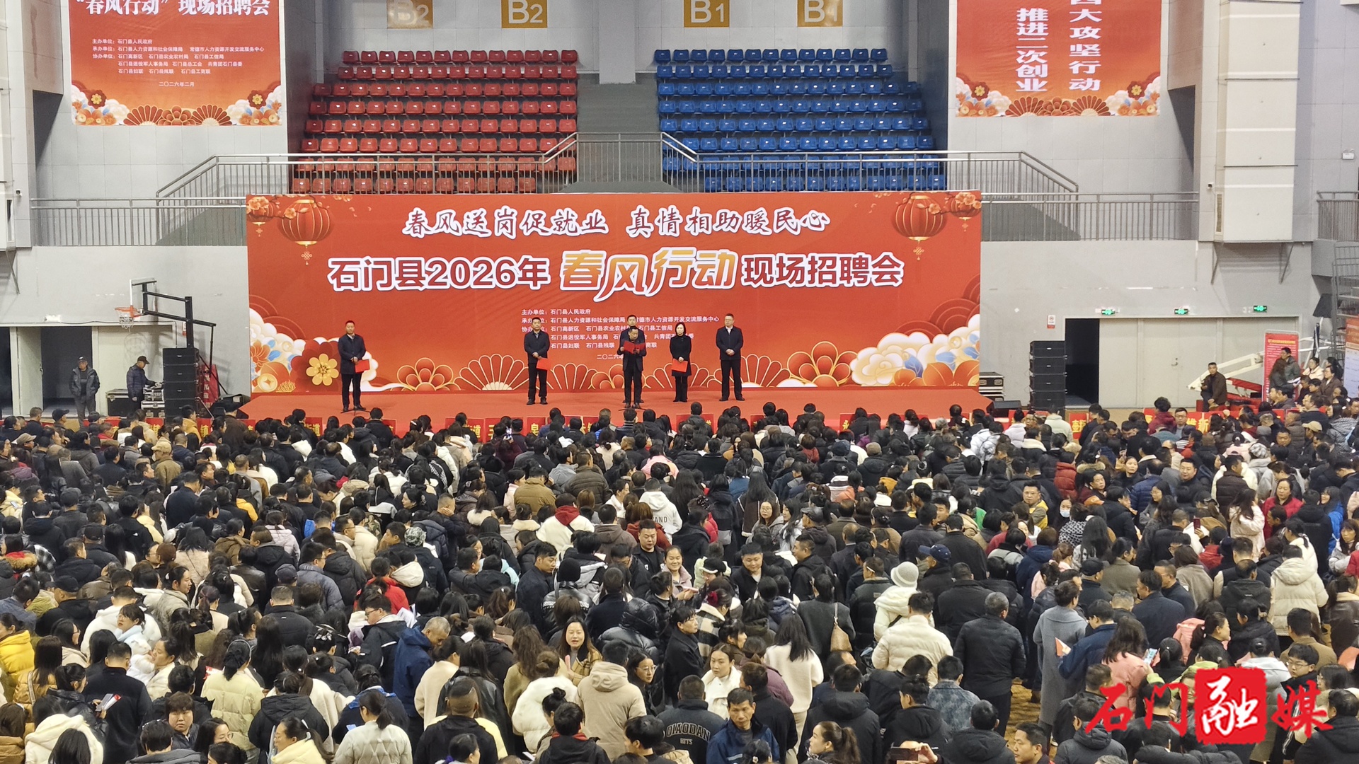 2月26日,石门县2026年“春风行动”大型现场招聘会在该县全民健身活动中心举行。