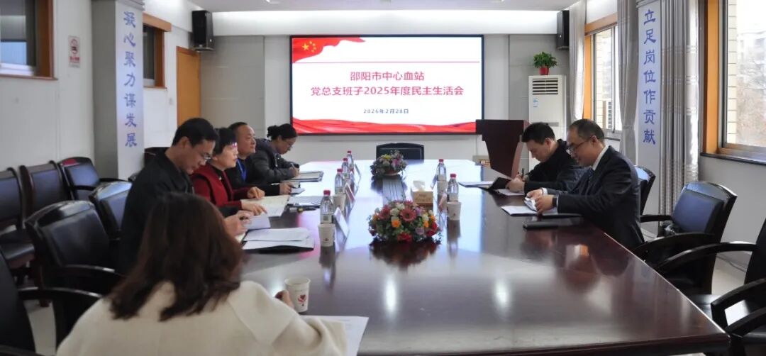 2月28日,邵阳市中心血站召开党总支班子2025年度民主生活会,市纪委监委驻市卫健委纪检监察组组长易明方,市卫健委党组成员、副主任唐海源莅会指导。党总支书记、站长向芳主持会议,全体班子成员参会。