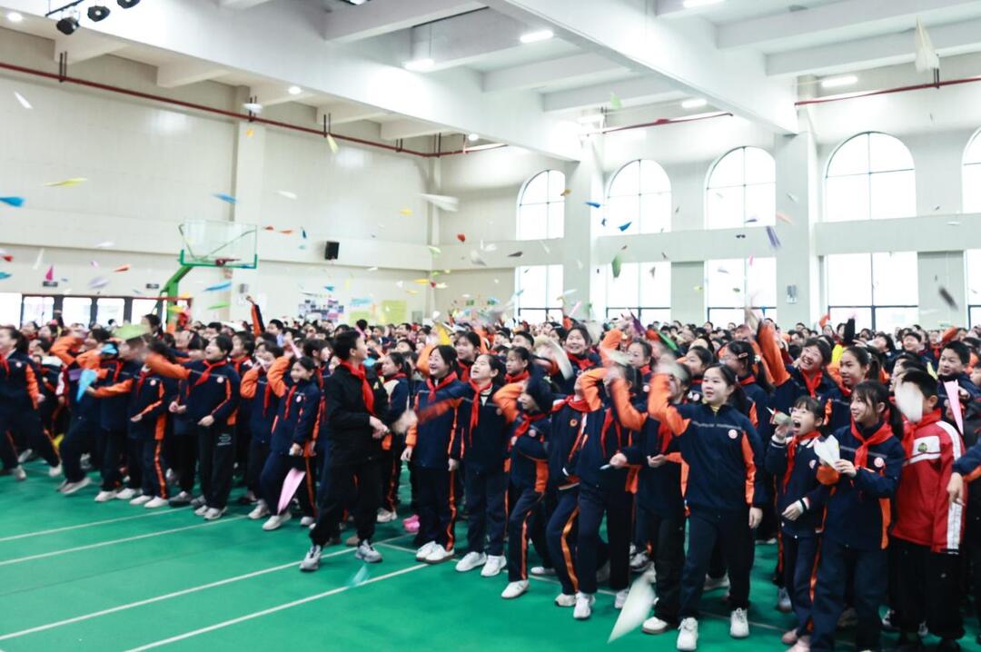典礼在充满期待与诗意的环节中达到高潮。悠扬的乐声里,每位师生手中都托起一架写满心愿的纸飞机。这场景,仿佛呼应着歌词中“马蹄扬起层层层云的沙”的奔腾意象。当倒计时结束,数百只纸飞机在室内同时放飞,宛如一群承载着梦想的鸟儿,轻盈地翱翔于礼堂上空。这简单而动人的一幕,将个人的小小心愿与集体的崭新展望交织放飞,描绘出新学期明亮的起点。