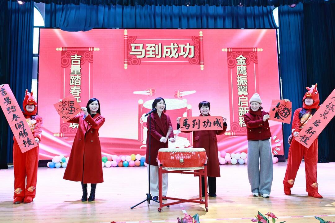 舞台之上,衣袂飘飘的《书简舞》将古风雅韵演绎得淋漓尽致,学生们通过柔美的舞姿传递出深厚的文化底蕴;《马年成语串烧》则以充满童趣的创意形式,把“一马当先”、“马到成功”等吉祥成语串联成朗朗上口的韵律,在欢声笑语中播撒下语言文化的种子。