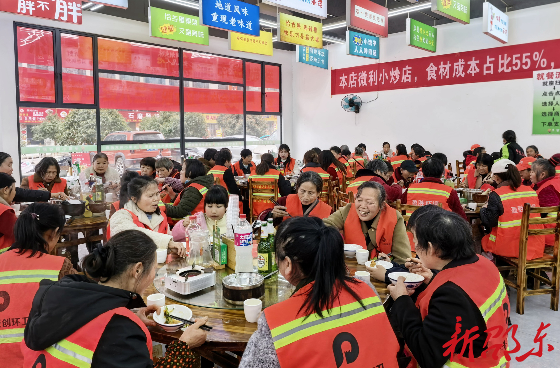 当天上午11点半,邵东市区北岭路乡里小厨餐饮店内暖意融融,欢声笑语不断。店家为前来的环卫女工们精心准备了丰盛可口的爱心午餐,并送上大米、植物油等节日慰问物资。大家围坐一堂,品尝热乎的饭菜,畅谈生活趣事,在温馨的氛围中,提前度过一个温暖又难忘的节日。