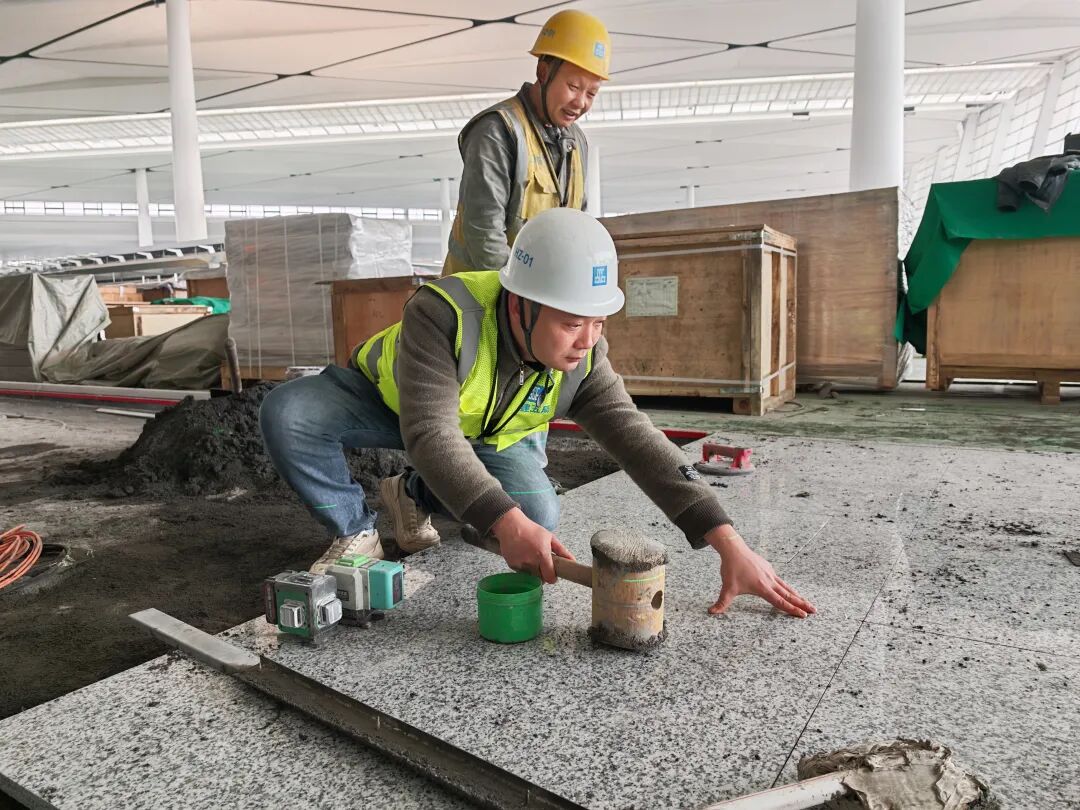 机场大厅35000平方米的石材铺贴,要求“墙地通缝”——即墙面和地面的砖缝必须完全对齐。项目团队采用全站仪打点,将整个区域划分为若干单元模块,对每一道伸缩缝进行毫米级精确控制。