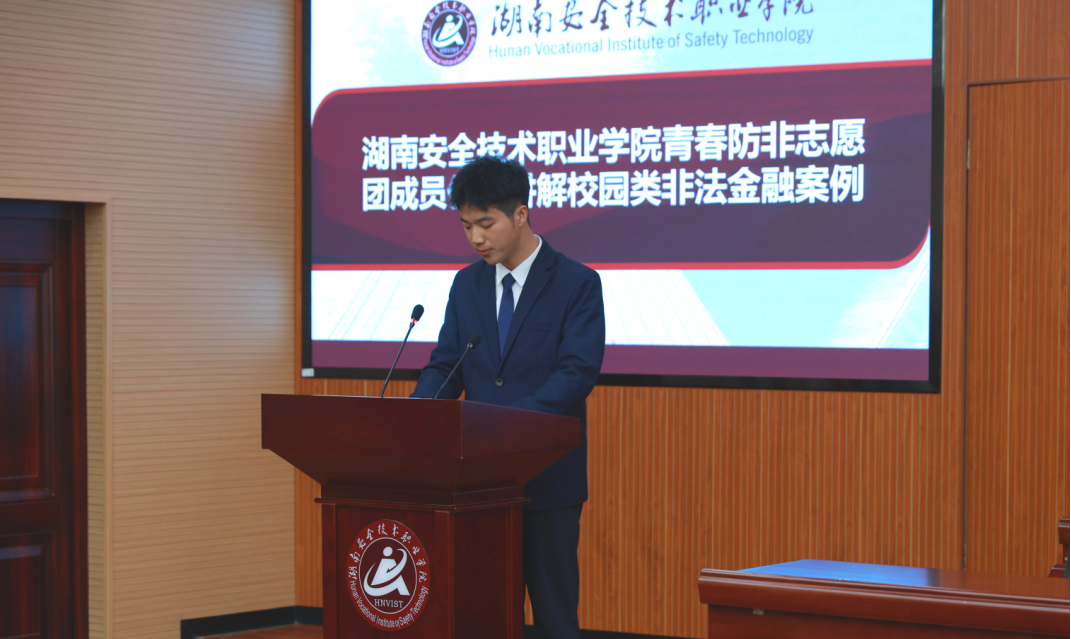 新湖南客户端讯(通讯员 方雯)为切实提升青年学生防范非法金融风险意识,筑牢校园安全防线,近日,湖南安全技术职业学院青春防非志愿团在图书馆513室举办校内首场防范非法金融知识宣讲活动。学校党委委员、副校长曾大恒,校团委书记佘文珏,现代商务学院党总支书记刘伟及各二级学院师生代表参加。