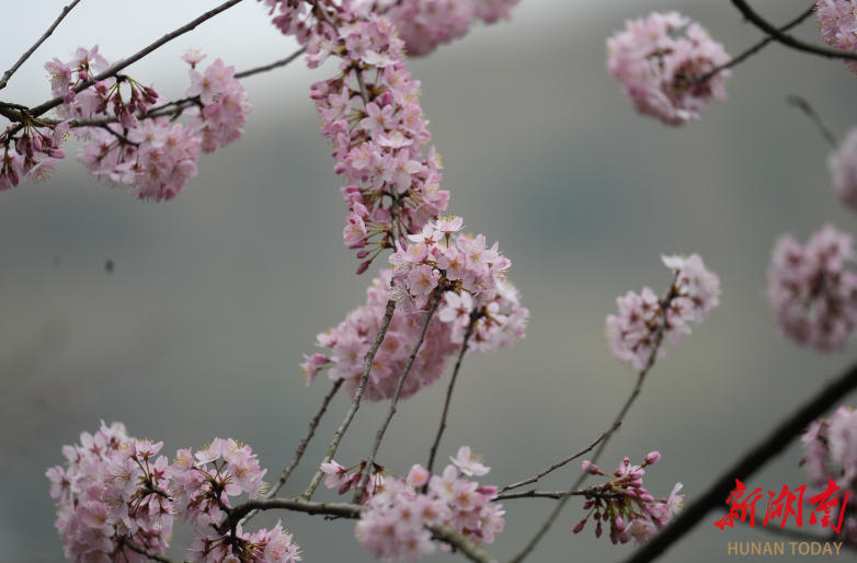 湖南日报·新湖南客户端3月10日讯(通讯员 唐芳艳 宋三龙 张先邵 记者 郑丹枚)随着气温逐渐回暖,3月8日,位于寨市苗族侗族乡十里铺的樱花竞相绽放,迎来最佳观赏期。粉白相间的樱花缀满枝头,如云似霞,将连绵起伏的山峦装点得格外绚烂,勾勒出一幅“阳春白雪”的春日画卷。