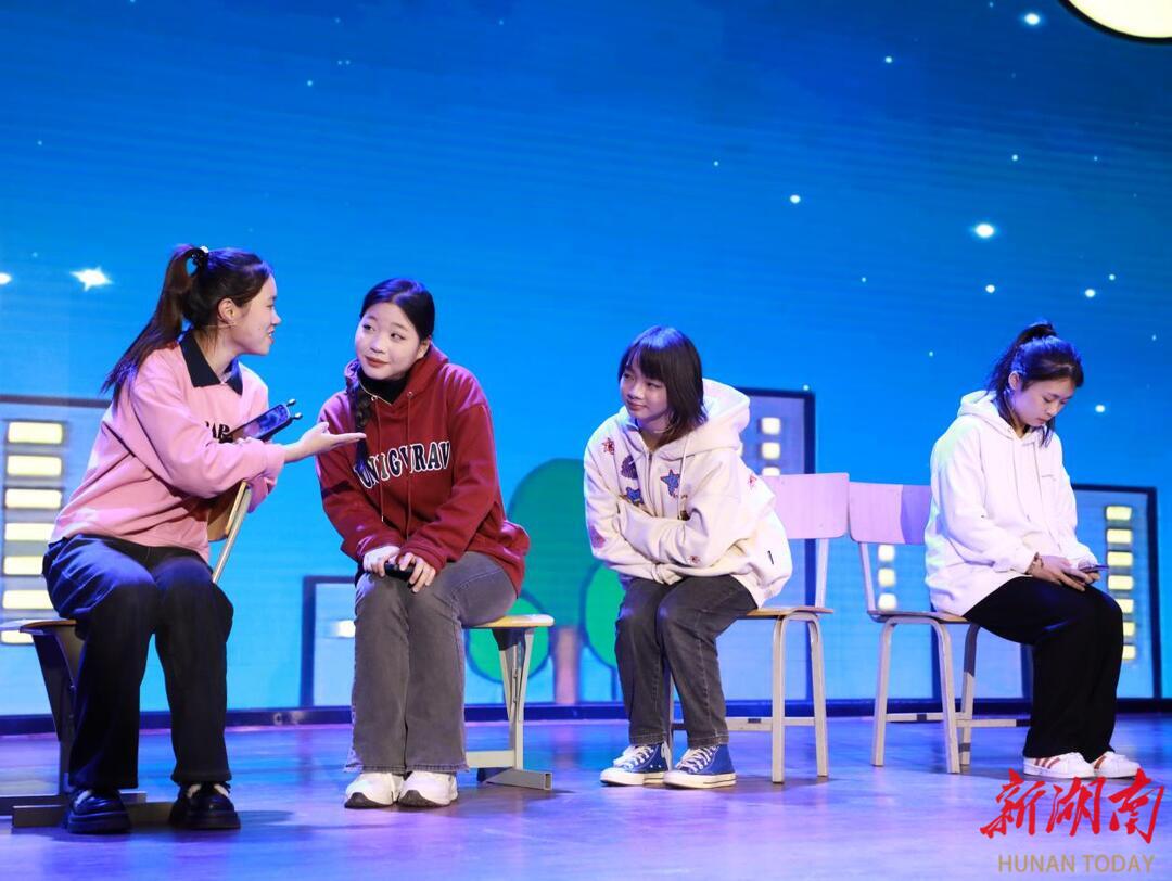 “学生有困惑,我们就做心理短剧;专业有特色,我们就做评书快板;校友有故事,我们就做情景剧。思政教育要实在,作品就得有根。”团队发起人杨文辉说。正是秉持这一理念,团队创作出一系列扎根校园、贴近学生的作品:讲述湖湘党史的微宣讲、展现湖湘文化的原创朗诵、融入专业特色的评书、取材于真实案例的心理短剧、讲述校友成才故事的情景剧、把经典读进心里的诵读作品……