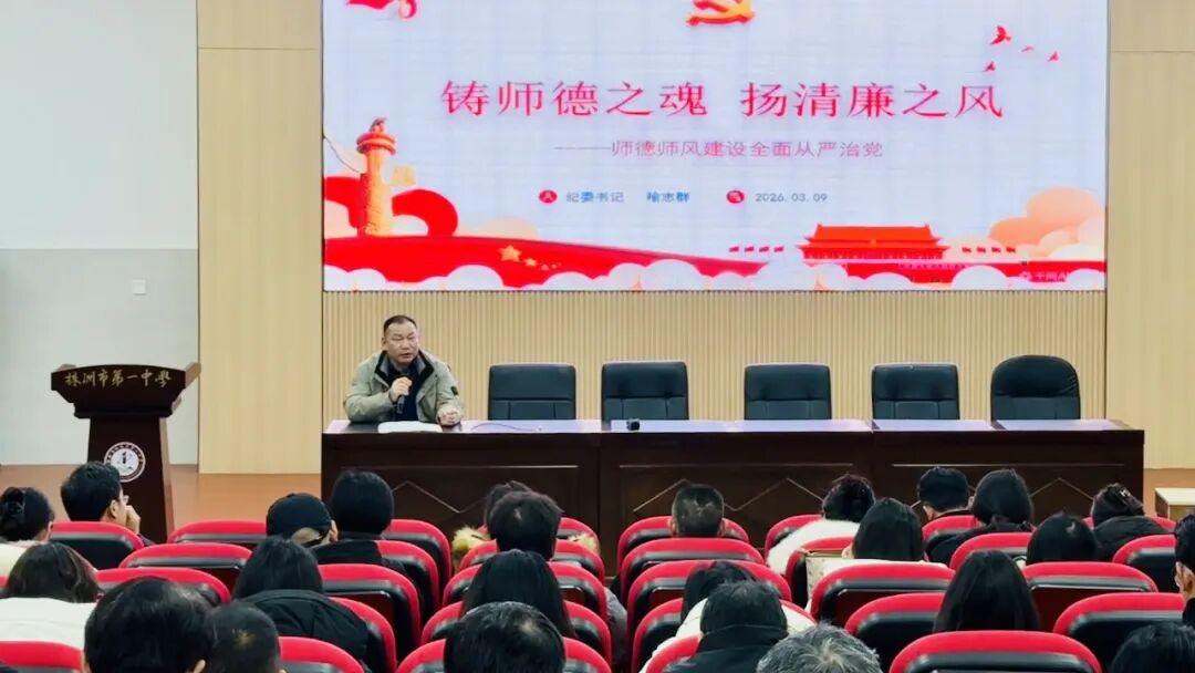 该校纪委书记喻志群围绕“守教育初心,担一中使命”,结合学校实际,部署师德师风与全面从严治党工作。他强调,全体教职工要筑牢思想防线,严守政治纪律、工作纪律、生活纪律,将党纪学习教育内化于心、外化于行,坚决杜绝酒驾醉驾等违纪行为。学校将重点开展“清朗讲台”“家校暖心”“减负提质”三项行动,严守课堂纪律,深入家访,杜绝违规补课。针对招生、采购、食堂管理等关键领域,强化监督,扎紧制度笼子,构建用制度管权管事管人的长效机制。通过正反典型案例警示教育,引导教职工知敬畏、存戒惧、守底线。他提出四点希望:心中有信仰、行动有规矩、眼中有学生、肩上有担当,号召全体教师以“学为人师,行为世范”为准则,共同维护公平公正的育人环境。株洲市第一中学将畅通监督渠道,对违规行为严肃处理、绝不姑息。