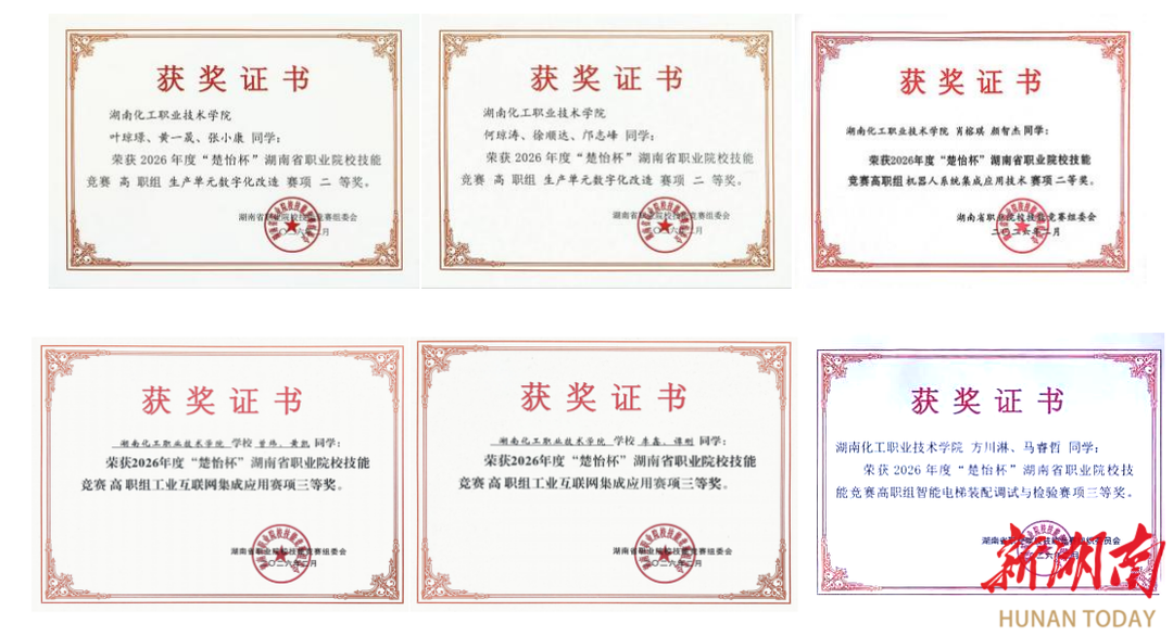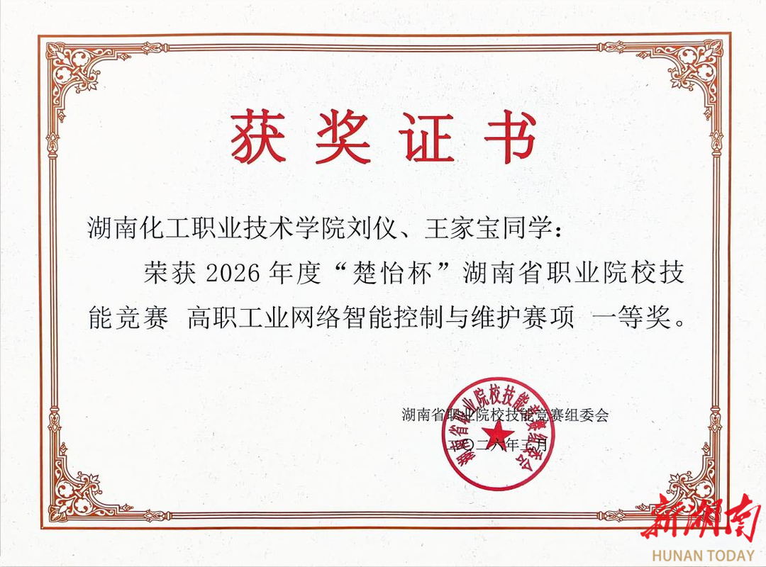 湖南日报·新湖南客户端3月11日讯(通讯员 张朝霞)在近日落幕的2026年度“楚怡杯”湖南省职业院校技能竞赛中,湖南化工职业技术学院智能控制工程学院参赛团队表现出色,于3月7日顺利完成所有赛项并载誉归来。