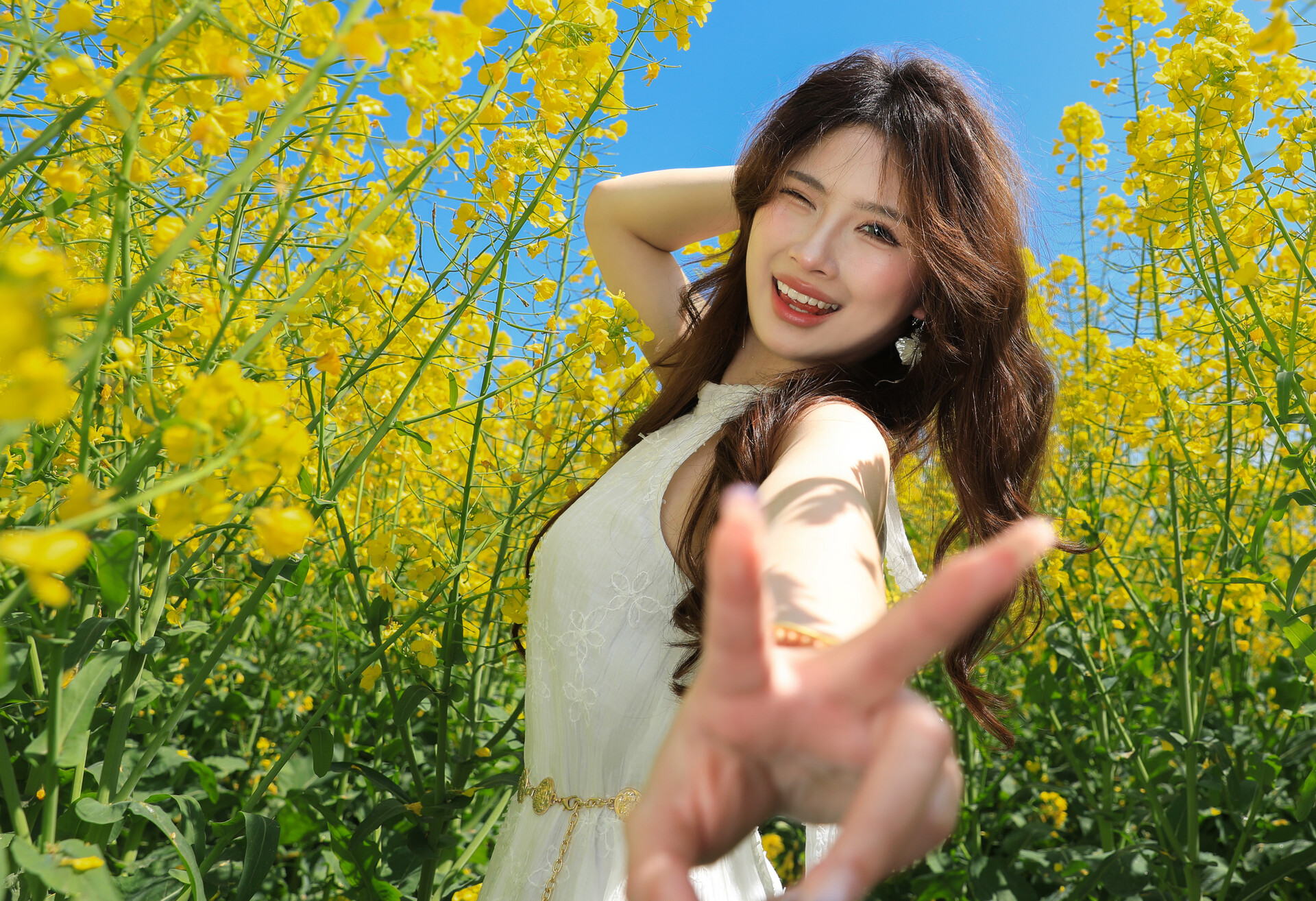 微风拂过,花海层层起伏,花香清新怡人,与周边青山、村落相映成趣,构成一幅清新自然的田园画卷。不少市民和游客趁着晴好天气前来踏青赏花,漫步花间小道,拍照留念,尽情享受春日里的美好风光。
