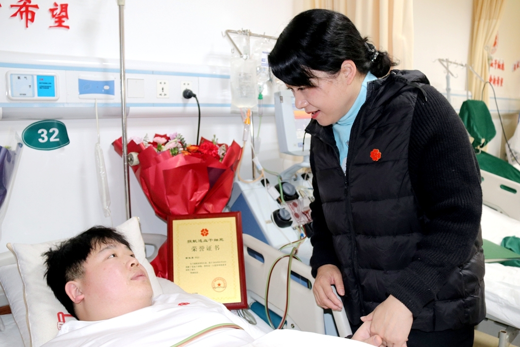 湖南省造血干细胞捐献者资料库管理中心主任张赞看望慰问捐献者 (魏小摄)